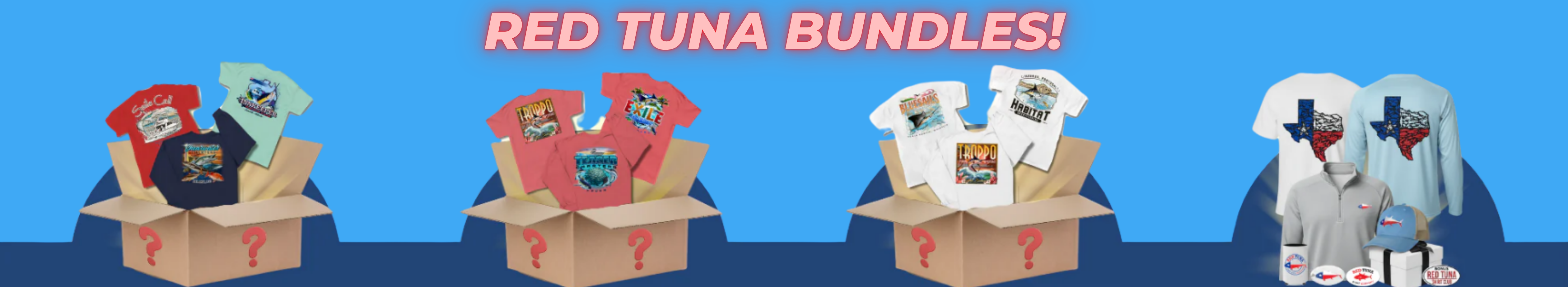 Discover the Red Tuna Bundle Collection — a surprise mix of our best-selling shirts. Each bundle includes unique designs, colors, and fits with no duplicates.